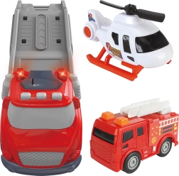 Strażacka furgonetka z serii CITY TRUCK pozwala dzieciom zostać prawdziwymi strażakami. Składa się z czerwonej furgonetki z przyczepą, helikoptera i małego wozu strażackiego. Dzięki realistycznym dźwiękom i światłom zabawa będzie jeszcze bardziej ekscytująca!