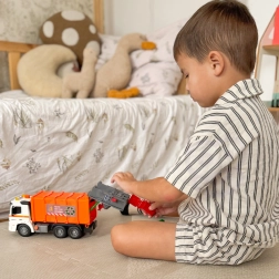 Interaktywna śmieciarka to doskonale wykonany model miejskiego pojazdu komunalnego, który zachwyci każdego małego miłośnika miejskich pojazdów. Wykonana z trwałych materiałów i w charakterystycznej pomarańczowo-białej kolorystyce, stanie się ulubioną częścią kolekcji zabawek twojego dziecka.