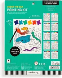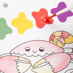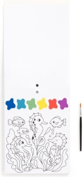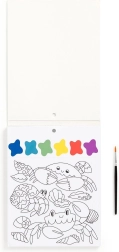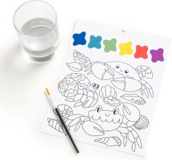 Zestaw zawiera pędzelek i 10 wstępnie zadrukowanych kart do kolorowania, każdą z motywem życia morskiego i paletą barw. Wystarczy zwilżyć pędzelek i zacząć tworzyć! Każda karta jest dodatkowo perforowana, co umożliwia łatwe oddzielenie gotowego obrazka.
