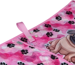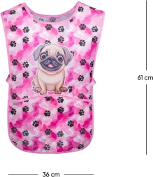 Szukasz niezawodnej ochrony ubrań dla małych twórców? Dziecięcy fartuszek z nadrukiem łapek i uroczym mopsem jest idealny na plastykę, zajęcia techniczne, gotowanie i domowe prace. Zmywalna, gładka powierzchnia jest łatwa w utrzymaniu – wystarczy przetrzeć wilgotną ściereczką, a znów wygląda jak nowy.