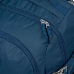 Materiał hydrofobowy szybko schnie i łatwo się czyści. Praktyczne elementy, takie jak zintegrowana przegroda na laptopa, kieszeń na okulary, karabińczyk na klucze oraz pasek do mocowania na walizce, ułatwiają organizację. Odpinane pasy piersiowy i biodrowy pomagają równomiernie rozłożyć obciążenie.