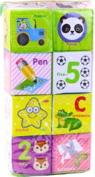 - 8 miękkich kostek, edukacyjne obrazki na każdej kostce, przezroczyste foliowe opakowanie