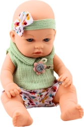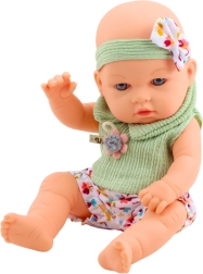 Ubranko składa się z miękkiej zielonej bluzeczki z kwiatową aplikacją oraz krótkich, kolorowych spodenek z kwiatowym wzorem, które przyciągają uwagę wiosenno-letnim stylem. Urocza opaska z kokardką dodaje lalce jeszcze więcej elegancji i dziewczęcego uroku.