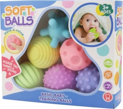 W zestawie znajduje się 6 kolorowych, miękkich piłek, każda z inną teksturą i kształtem, w tym powierzchnie z wypustkami, rowkami, gładkie i z kolcami. Ta różnorodność zapewnia różnorodne bodźce dotykowe. Dzieci podczas zabawy uczą się rozróżniać kształty, struktury i kolory, co pozytywnie wpływa na ich rozwój poznawczy.