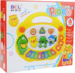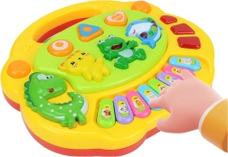 To kolorowe pianinko oferuje doskonałą zabawę dla twojego dziecka, które dzięki niemu nauczy się rozpoznawać głosy żaby, kotka, pieska i wielu innych zwierząt, co wspiera rozwój wyobraźni i myślenia skojarzeniowego.