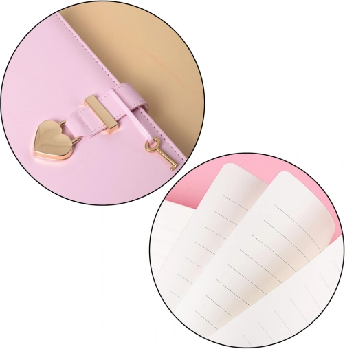 Dzięki złoconym brzegom kartek prezentuje się bardzo stylowo i efektownie nawet w zamkniętym stanie. Liniowane strony ułatwiają estetyczne prowadzenie notatek, a zamek w kształcie serca z kluczykiem gwarantuje prywatność.
