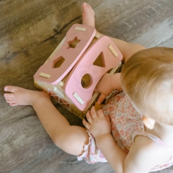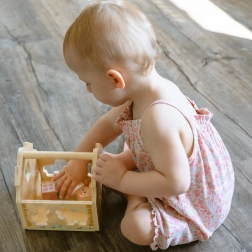 Stabilne, drewniane wykonanie i wygodny uchwyt ułatwiają przenoszenie zabawki w domu i w podróży.