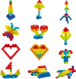 Przedstawiamy wspaniały zestaw konstrukcyjny zaprojektowany, aby rozwijać dziecięcą wyobraźnię i zdolności manualne. Zawiera 300 kolorowych elementów do tworzenia fantastycznych kształtów, takich jak roboty, kwiaty, motyle i wiele innych.