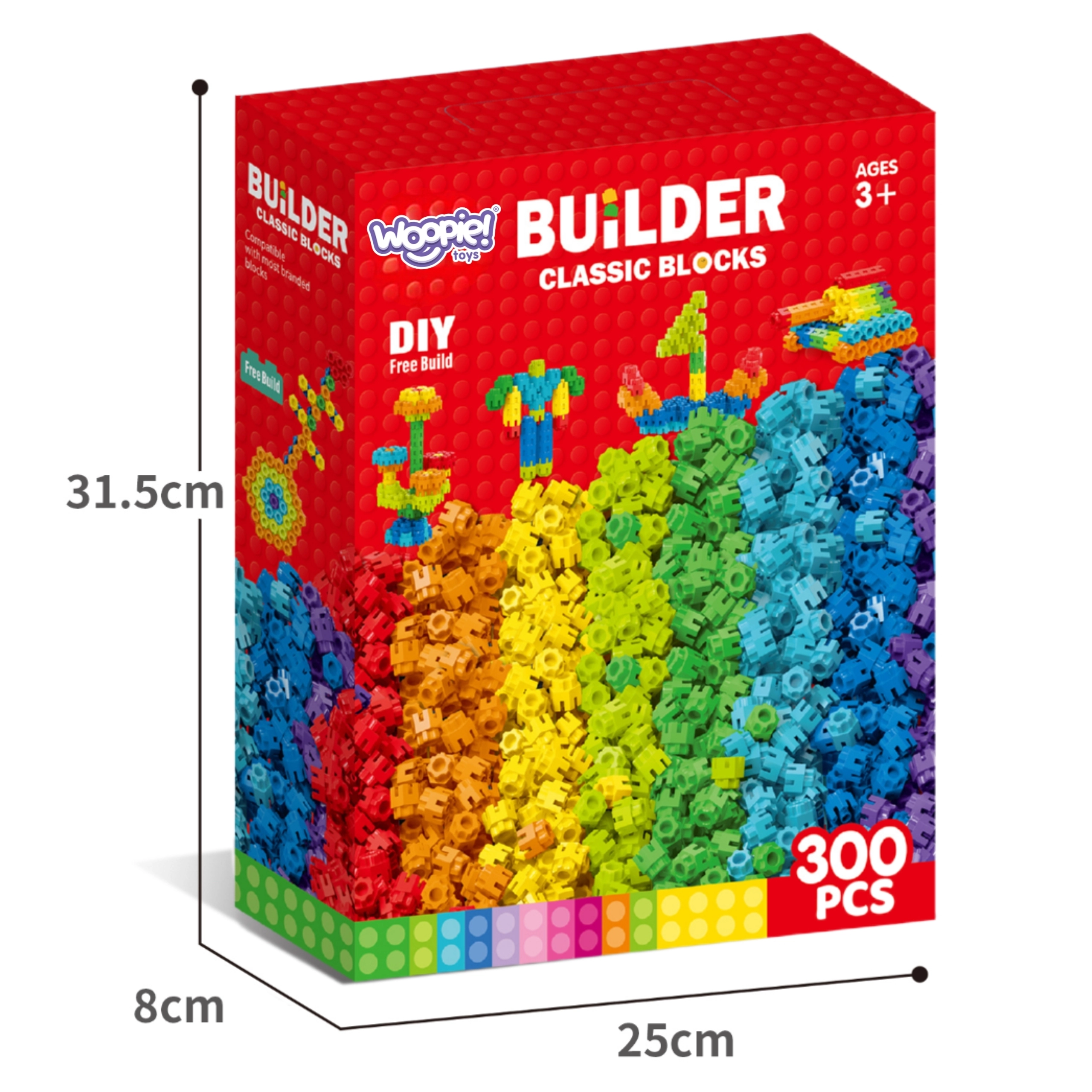 Z klockami Woopie dzieci spędzą długie godziny na zabawie, jednocześnie rozwijając logiczne myślenie, kreatywność i zręczność. Dzięki 300 różnokolorowym elementom mogą tworzyć nieograniczoną liczbę konstrukcji – od prostych po bardziej złożone modele 3D.