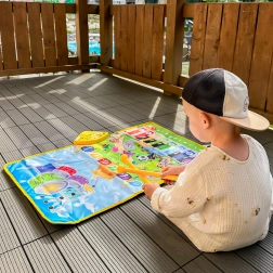 Mata jest miękka, bezpieczna i łatwa w składaniu oraz przenoszeniu, więc bez trudu zabierzesz ją do salonu, dziecięcego pokoju czy w drogę. Praktyczne funkcje, takie jak nagrywanie i regulacja głośności, łączą zabawę z nauką.