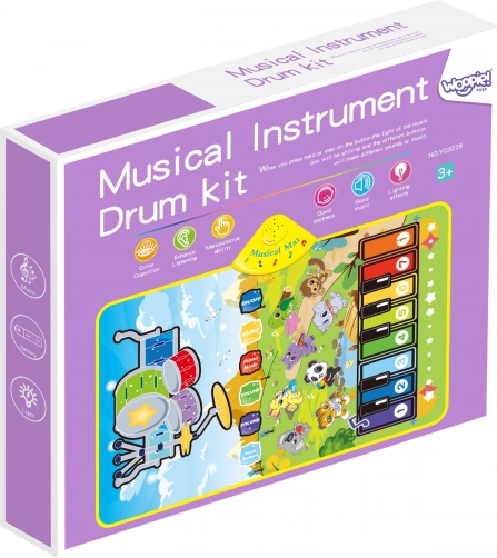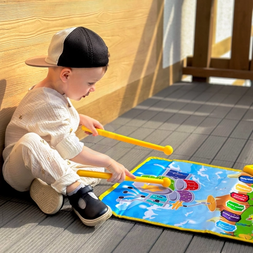 Rozbudź w dzieciach miłość do muzyki i ruchu dzięki interaktywnej macie 2w1. Łączy pianino i perkusję, oferuje nagrywanie własnych utworów, regulację głośności i jest łatwo składana oraz przenośna – idealna dla dzieci od 3 lat.