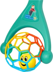 Zabawka składa się z większej elastycznej kuli z otworami dla łatwego chwytania oraz wygodnej turkusowej rączki. Wewnątrz kuli znajduje się mniejsza przezroczysta kulka z kolorowymi grzechoczącymi kuleczkami, które podczas ruchu wydają dźwięki i bawią dzieci. Kula może się toczyć, można ją rzucać, ściskać lub, po zamocowaniu rączki, pchać i przyciągać, co czyni ją bardzo uniwersalną i dynamiczną zabawką.