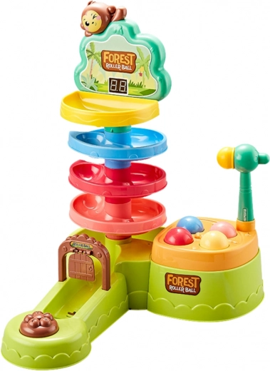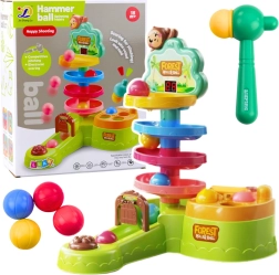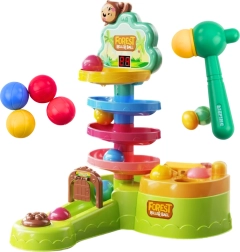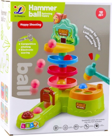 Tor kulkowy jest wykonany z bezpiecznych, kolorowych i wytrzymałych materiałów, które przyciągają uwagę i zachęcają do zabawy. Rozpocznij grę, umieszczając jedną z czterech kulek na szczycie toru. Dziecko wprawia ją w ruch uderzeniem młoteczka i obserwuje, jak zjeżdża w dół, co rozwija koordynację oraz zrozumienie związków przyczynowo-skutkowych.