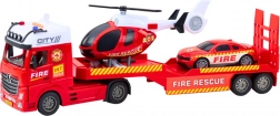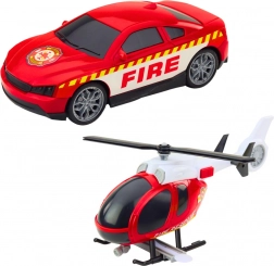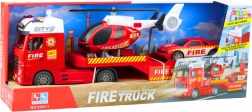 Dziecięcy zestaw strażacki z ciężarówką, helikopterem i wozem strażackim