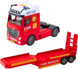 Zestaw strażacki jest przeznaczony dla dzieci, które uwielbiają pojazdy ratunkowe. W skład zestawu wchodzą duża ciężarówka typu ciągnik siodłowy, czerwony pojazd ratunkowy oraz helikopter. Wszystkie elementy mają charakterystyczną czerwono-żółtą kolorystykę i wzornictwo inspirowane strażą pożarną.