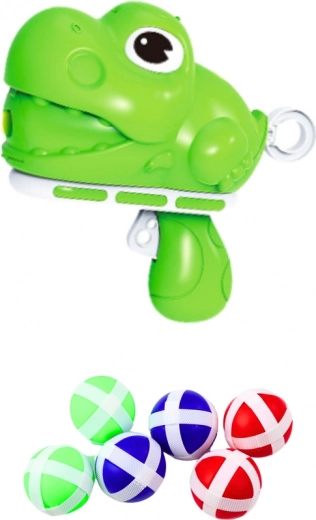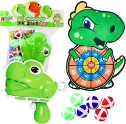 W zestawie znajdziesz pistolet w kształcie dinozaura, który dzięki sprężynowemu mechanizmowi umożliwia szybkie naciąganie i strzał. W ten sposób gracz uczy się planowania kolejności ruchów i celności, co zwiększa jego umiejętności. Gra zawiera sześć miękkich, bezpiecznych piłeczek z elementami samoprzylepnymi, które mocno przylegają do powierzchni tarczy i minimalizują ryzyko zgubienia części.