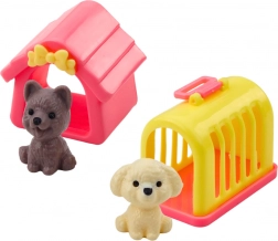 Mini laleczka z pieskami i akcesoriami to świetny zestaw do zabawy, który spodoba się każdemu dziecku lubiącemu zwierzątka. Zawiera laleczkę o wysokości 12 cm, ubraną w kolorową sukienkę z nadrukiem słodkiego pieska, oraz dwa pieski – jeden ma swoją kolorową budę, a drugi podróżuje w żółto-różowym transporterze. Ten komplet daje dziecku wiele możliwości tworzenia historii i scenek z życia małej opiekunki piesków.