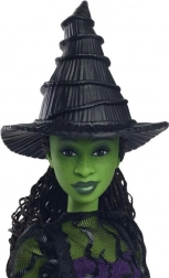 Lalka ma ikoniczny wygląd z filmu z detalicznie opracowaną zieloną twarzą, warkoczykami i czarodziejskim kapeluszem.