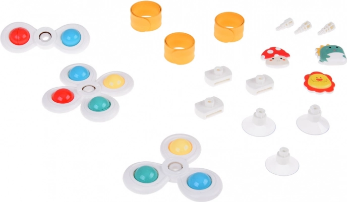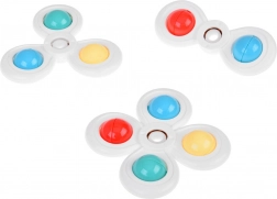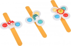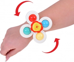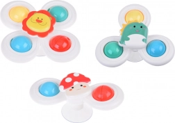 Dzięki specjalnym pierścieniom obrotowym spinner rozwija zdolności motoryczne Twojego dziecka i zapewnia mu niekończącą się zabawę. Spinner jest dostępny w zestawie 3 sztuk, każda z własną przyssawką i paskiem, i gwarantuje barwne, radosne chwile.