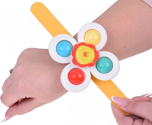 Uatrakcyjnij czas kąpieli swoich dzieci dzięki kolorowym spinnerom z wesołymi motywami lwiątka, grzybka i dinozaura. Spinner można łatwo przymocować do różnych powierzchni, więc dziecko będzie zajęte także podczas posiłku lub jazdy samochodem.