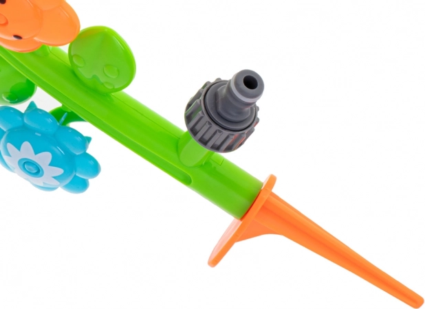 Montaż jest maksymalnie prosty: wbij szpikulec w ziemię, podłącz wąż ogrodowy przez standardową szybkozłączkę i gotowe. Wytrzymałe, plastikowe wykonanie poradzi sobie z wieloma sezonami, a żywe kolory zachęcają do zabawy wciąż na nowo.
