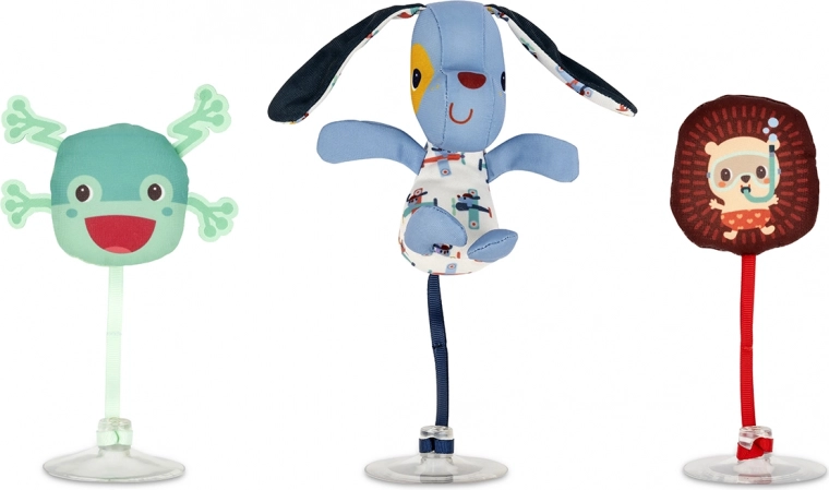 Zabawka wodna Piesek Jules zapewnia niemowlętom rozrywkę podczas kąpieli dzięki trzem figurkom: pieskowi Julesowi, jeżowi i żabce, które mocuje się za pomocą przyssawek. Figurki można łatwo przymocować do dna lub ściany wanny, skąd mogą „tańczyć” na wodzie. Ta zabawka jest idealna do rozwoju wzroku i motoryki dzieci od 3 miesięcy. Po użyciu opłucz zabawkę czystą wodą i wysusz. Można prać w pralce w delikatnym cyklu w 30°C.