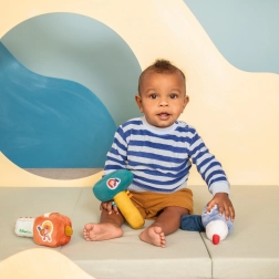 Grzechotka w formie wiertarki to idealny dodatek dla małych majsterkowiczów. Dziecko pokocha zabawę i naśladowanie prawdziwego wiercenia, tak jak majster Piesek Jules. Grzechotka została zaprojektowana tak, aby stymulować zmysły dzieci oraz wspierać ich aktywną wyobraźnię i naśladowanie.
