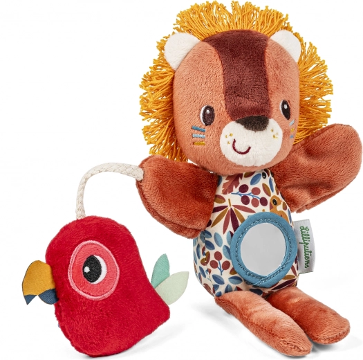 Pacynka Lew Jack od Lilliputiens to idealna zabawka dla dzieci od 6 miesięcy. Zawiera grzechotkę, szeleszczącą papugę oraz lusterko, co stymuluje rozwój zmysłów i umiejętności motorycznych dziecka.