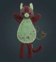 - Pluszowa pacynka w kształcie kotki, która świeci w ciemności i daje dziecku poczucie bezpieczeństwa.