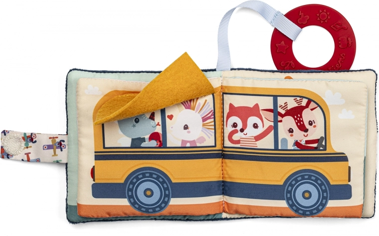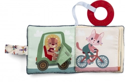 Tekstylna książeczka z motywem pieska Julesa oferuje Twojemu dziecku mnóstwo zabawy. Dzięki pętelce na rzep można ją łatwo przymocować do wózka lub łóżeczka, co ułatwia jej obsługę i przechowywanie. Książeczka stymuluje wzrok i słuch oraz zawiera wszytą gryzaczkę, która przynosi ulgę dzieciom podczas ząbkowania. Książeczka nie zawiera tekstu, ale wesołe ilustracje zachęcają do opowiadania prostych historii.
