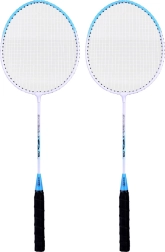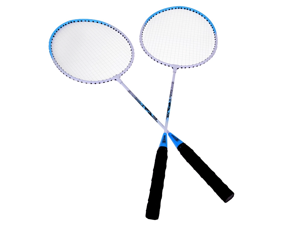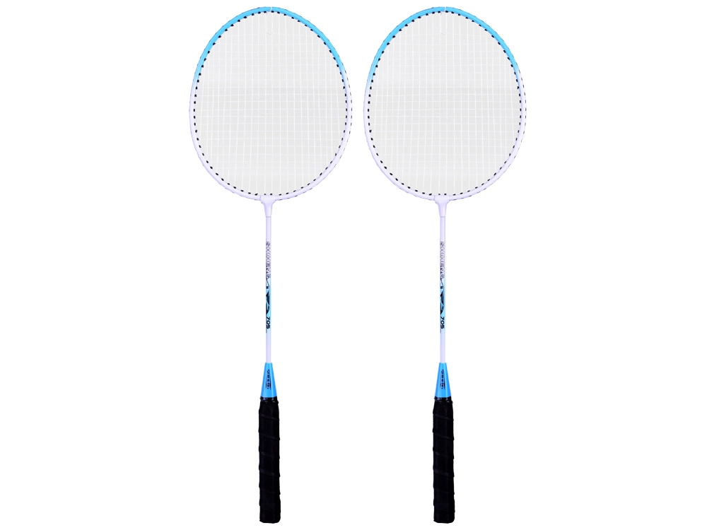 Zestaw zawiera dwie solidne rakiety oraz praktyczny pokrowiec z rączką, który ułatwia przechowywanie i transport. Rakiety wykonane są z lekkiego, a jednocześnie wytrzymałego materiału, co zapewnia wygodę użytkowania. Rękojeści pokryto miękką, antypoślizgową warstwą dla pewnego i komfortowego chwytu nawet podczas intensywnej gry.