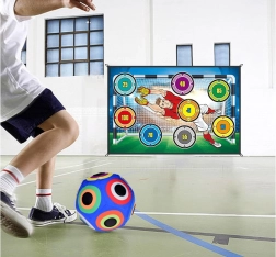 Zestaw do piłki nożnej z tarczą został zaprojektowany tak, aby był bezpieczny i przyjazny dla dzieci. Wykonany jest z trwałych, nietoksycznych materiałów, które są miękkie i bezpieczne. Kolorowa i atrakcyjna tarcza przyciąga uwagę dzieci i zachęca je do ćwiczeń. Świecąca piłka wnosi do gry dodatkowe zaskoczenie; świeci podczas rzutu, co zwiększa frajdę. Gra jest prosta w obsłudze; dzieci mogą samodzielnie próbować trafić piłką w otwory, rozwijając precyzję i koncentrację. Dodatkowo wspiera rozwój motoryki; rzuty, celowanie i łapanie pomagają ćwiczyć motorykę małą oraz koordynację ręka–oko.