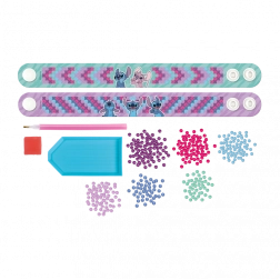 Stwórz własne olśniewające bransoletki z motywem Stitch za pomocą diamentowego malowania. Ten kreatywny zestaw zawiera wszystko, co potrzebne do ozdobienia dwóch oryginalnych bransoletek błyszczącymi kamykami.