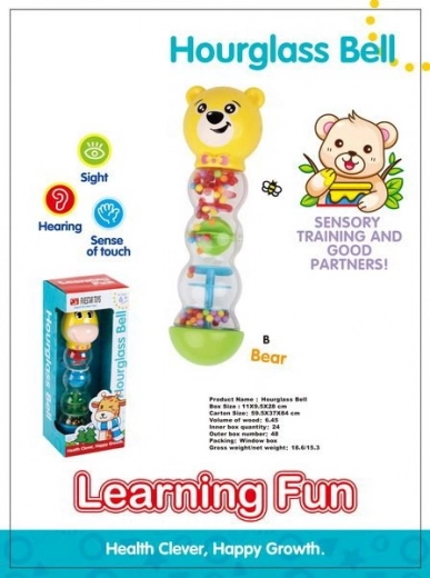 Ten uroczy przesypujący grzechotka w kształcie misia ucieszy każde dziecko. Idealny do stymulacji zmysłów i wspierania umiejętności motorycznych.