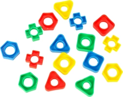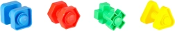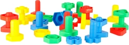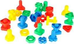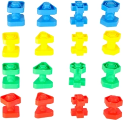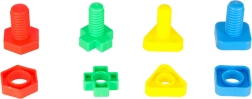 Poszczególne śruby i nakrętki mają różne kształty, które należy prawidłowo sparować. Dzięki prostemu zasadniczemu mechanizmowi układanka jest odpowiednia dla przedszkolaków i świetnie wspiera wyobraźnię przestrzenną oraz cierpliwość.