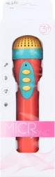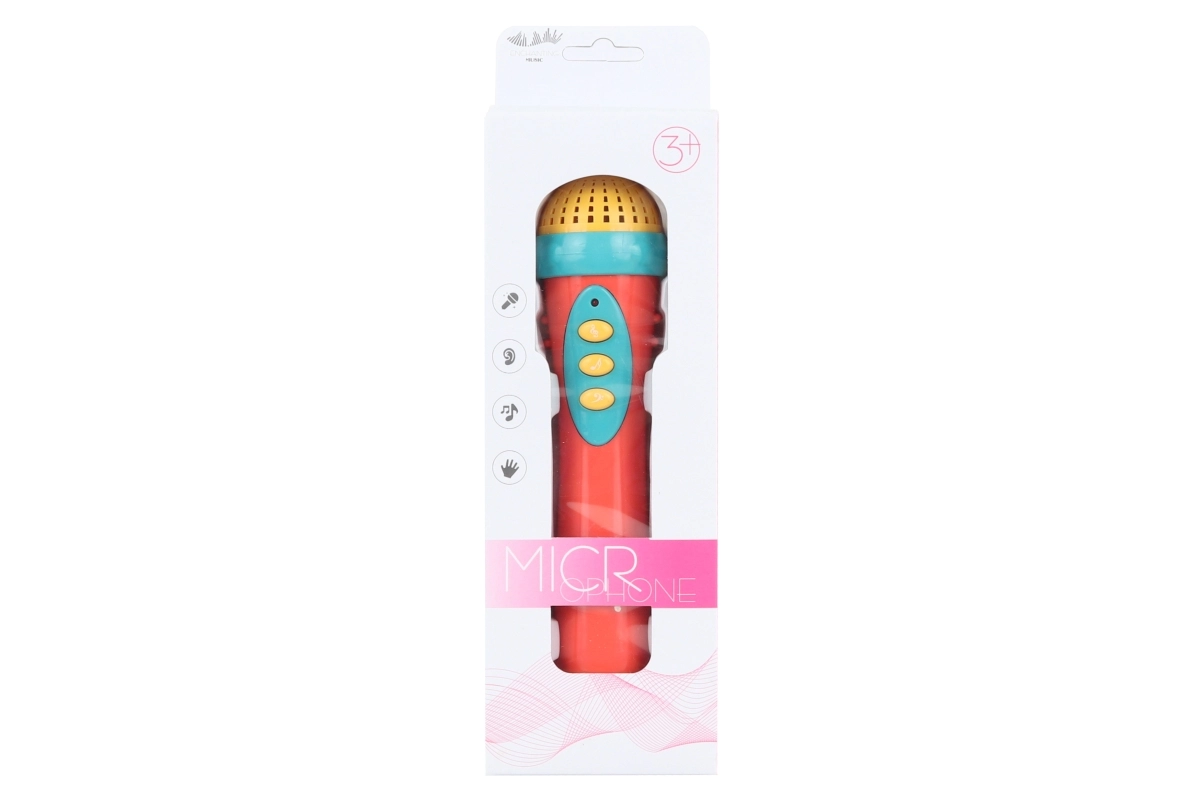 Plastowy mikrofon dla dzieci na baterie z możliwością odtwarzania trzech rodzajów melodii – idealny do rozwijania umiejętności wokalnych u dzieci.