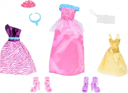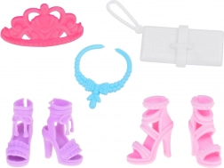 Zestaw modnych ubranek ANLILY jest doskonały dla dzieci, które uwielbiają styl i projektowanie. Zawiera trzy różne sukienki - każda z unikalnym krojem i kolorem, dwie eleganckie pary butów na obcasie, stylową torebkę, niebieski naszyjnik oraz delikatną koronę, idealną dla każdej małej księżniczki.