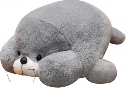 Pluszowa foka wykonana jest z wysokiej jakości materiału w delikatnym, szarym kolorze, przypominając realistyczną fokę o przyjaznym, lekko spłaszczonym kształcie. Jej zaokrąglone ciało, wyraziste płetwy oraz słodka buzia z noskiem i wąsikami natychmiast wzbudzają zaufanie i chęć przytulenia.