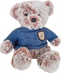 Ten pluszowy miś wykonany jest z wysokiej jakości, miękkiego i delikatnego pluszu w szarym odcieniu, który jest bardzo przyjemny w dotyku i bezpieczny nawet dla najmłodszych dzieci. Jego gęste włoski, zaokrąglone łapy i przyjazna twarz z twardym nosem i oczami tworzą harmonijną całość, która swoim naturalnym wyglądem zachwyca. Ubrany w dzianinowy sweter z haftowaną naszywką na piersi, miś prezentuje się stylowo i wyraziście, co dodaje mu nie tylko roli zabawki, ale także dekoracji.