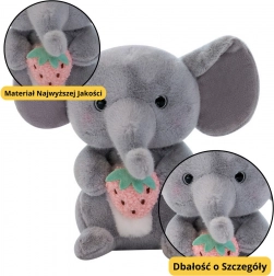 Pluszowy słoń może stać się świetnym towarzyszem codziennej zabawy, podróży, do przedszkola lub spokojnego snu. Jego kompaktowy rozmiar zapewnia łatwe przenoszenie. Słoń ma duże uszy, miły wyraz pyszczka i trzyma pluszową truskawkę, co czyni go wyjątkowym.