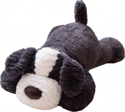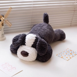 Ten pluszowy pies ma sympatyczną buzię z dużym noskiem, długie, wiszące uszy i puszysty ogon, co nadaje mu wyjątkowo przyjazny i radosny wygląd. Leży w wygodnej, naturalnej pozycji z łapkami wysuniętymi do przodu i do tyłu, co pobudza dziecięcą wyobraźnię i kreatywność.