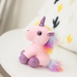 Ten uroczy pluszowy jednorożec to oryginalny dodatek do plecaka, torebki, kluczy lub piórnika. Wykonany z przyjemnego w dotyku różowego pluszu z połyskującymi fioletowymi elementami, ma miękką grzywę i ogon w tęczowych kolorach oraz lśniący róg. Ten mini jednorożec zachwyci zarówno dzieci, jak i dorosłych.