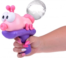 Pistolet wodny przyciąga uwagę swoim bajkowym wyglądem – zabawny robaczek ma duże oczy, urocze czułki i otwarte usta, z których po naciśnięciu przycisku tryska woda. Cała konstrukcja umieszczona jest na wygodnym, kolorowym uchwycie, który służy zarówno jako rączka, jak i spust do strzelania wodą.