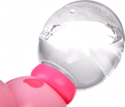 Na tylnej stronie zabawki znajduje się przezroczysty, okrągły zbiornik na wodę. Umożliwia łatwą kontrolę ilości płynu i szybkie napełnianie. Aby go napełnić, wystarczy odkręcić korek, wlać wodę i ponownie go przykręcić.