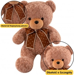 Ten pluszowy miś jest wykonany z przyjemnego, lekko kręconego materiału, idealnego do przytulania i odpoczynku. Miś ma stabilną konstrukcję, zaokrąglone kształty i przyjazny wyraz pyszczka, co czyni go świetnym towarzyszem zabaw, pluszowym przyjacielem do snu oraz ozdobą dziecięcego pokoju.