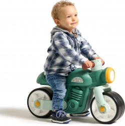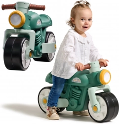 Jeździk Falk dziecięcy motorek Retro w zielonym kolorze świetnie sprawdzi się zarówno w pomieszczeniach, jak i na zewnątrz. Został wykonany z myślą o bezpieczeństwie i komforcie małego użytkownika.