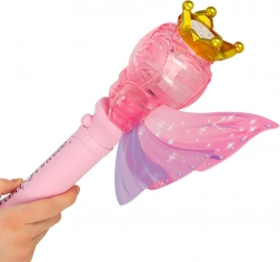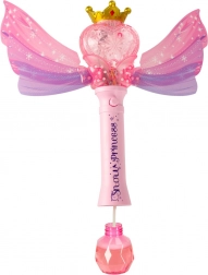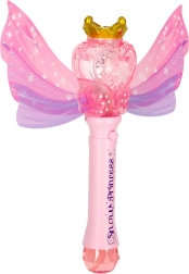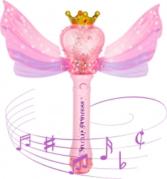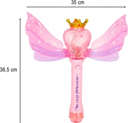 Maszyna do baniek mydlanych w kształcie czarodziejskiej różdżki przemienia wypuszczanie baniek w dziecięcą zabawę! Wystarczy nacisnąć jeden przycisk, a z urządzenia zaczyna wydobywać się wiele małych baniek w mgnieniu oka.
