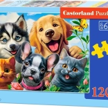 Ciesz się mnóstwem zabawy z tym puzzle zawierającym 120 elementów, na którym uśmiechają się urocze zwierzątka. Idealny dla dzieci i dorosłych.
