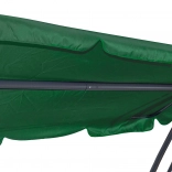 Dach w jednolitym zielonym kolorze nadaje huśtawce świeży i elegancki wygląd. Oprócz ochrony dach posiada także dekoracyjną falbanę, która dodaje stylu.