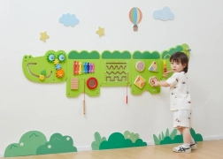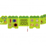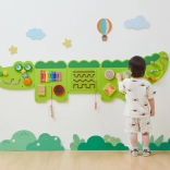 Ta duża ścienna tablica aktywności w formie wesołego krokodyla składa się z kilku paneli, które zachęcają dzieci do odkrywania. Kolorowe elementy pobudzają ciekawość, rozwijają zmysły i wspierają samodzielną zabawę. Solidna drewniana konstrukcja z gładkimi krawędziami jest bezpieczna i trwała w codziennym użytkowaniu.